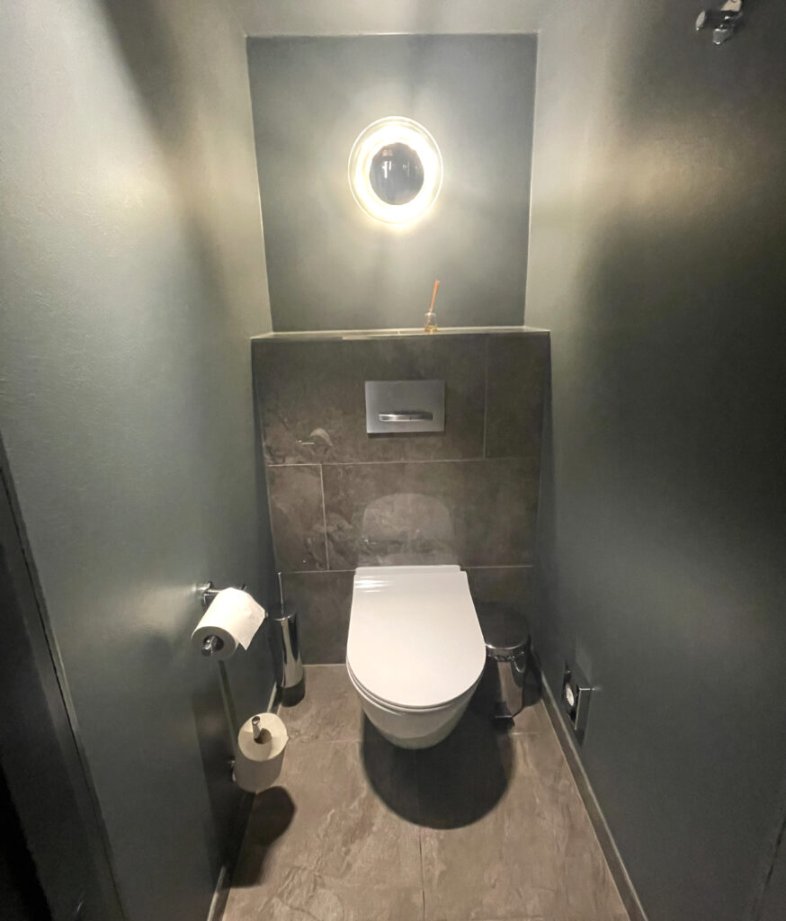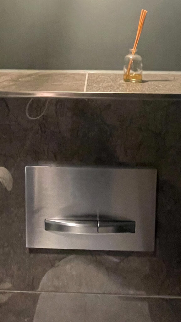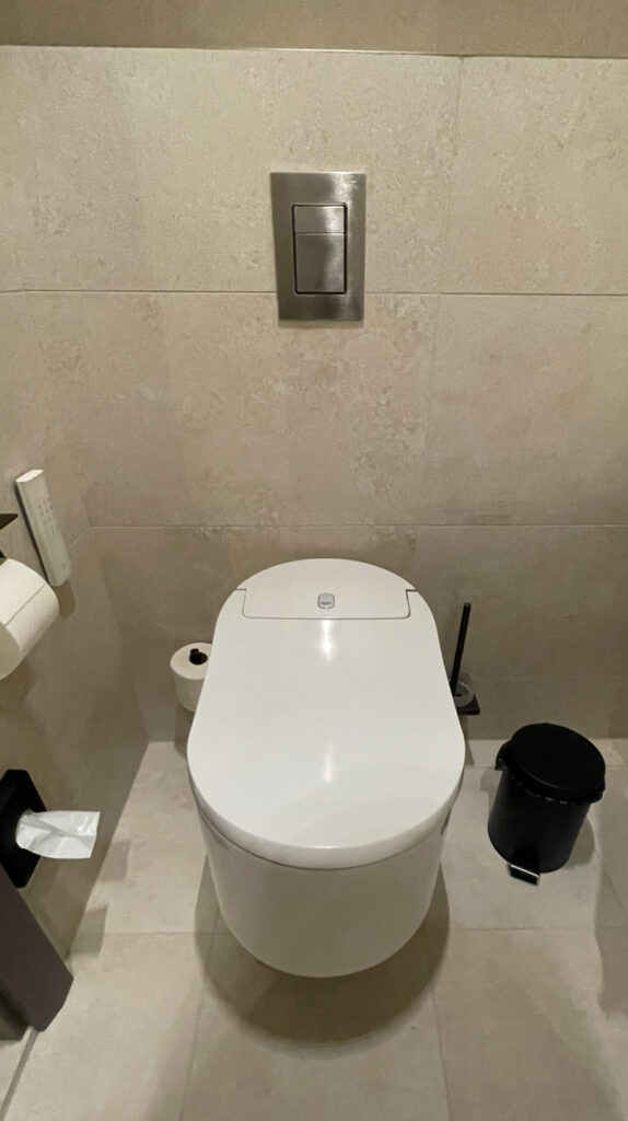 それはトイレの洗浄スイッチにも現れています。小さいほうを「小」で大きい方を「大」とし、ミニマルデザインとなっていました。