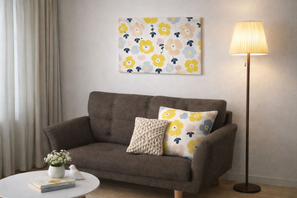 大掛かりな模様替えをしなくても、お気に入りの一枚を置くだけで、部屋の空気が変わります。